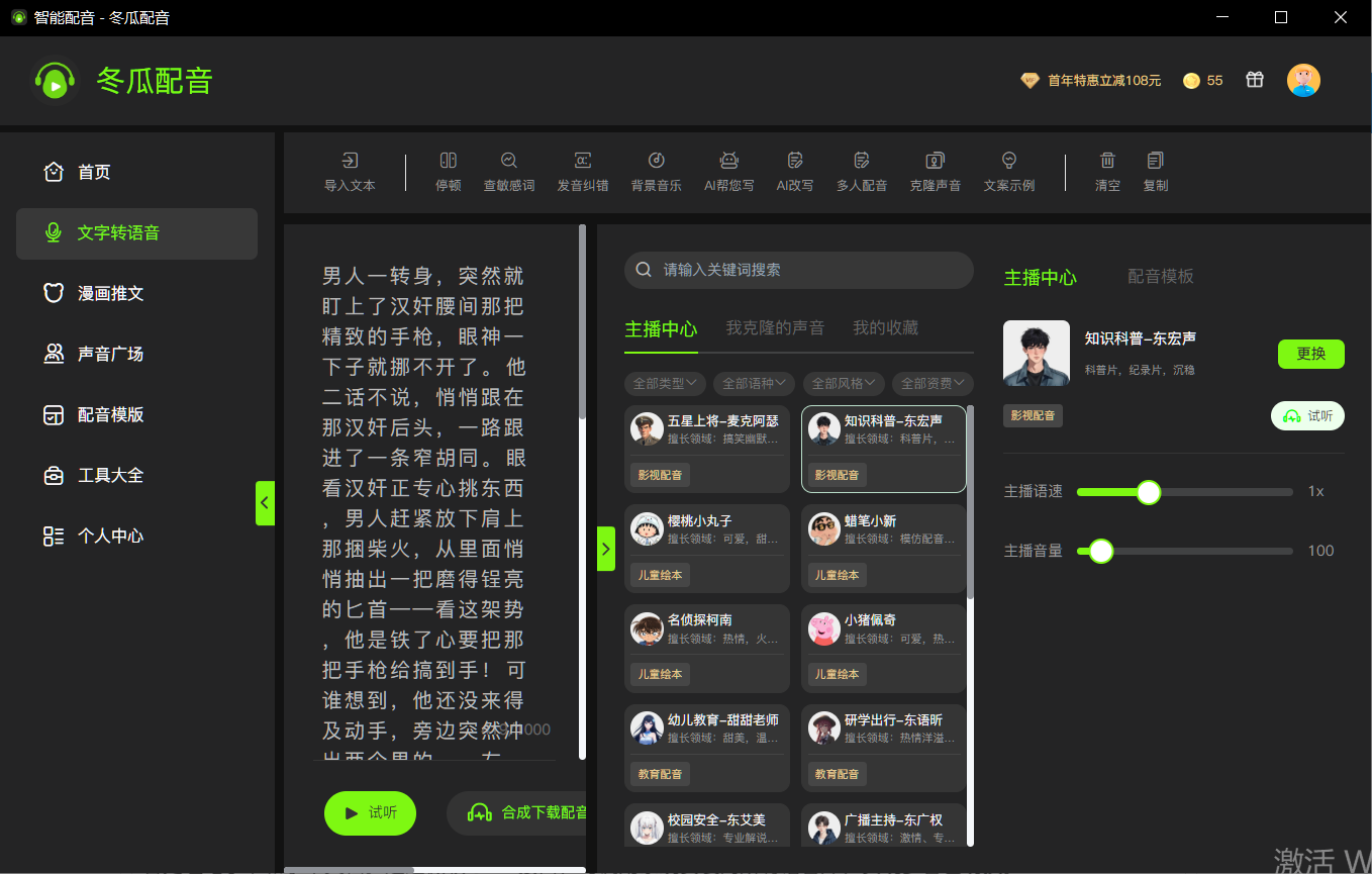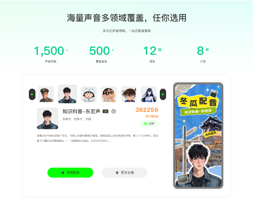 视频配音花大价钱找声优?有声书录制找不到贴合的音色?小说推文需要多种角色配音却束手无策?别愁了!今天给大家安利一款「宝藏级AI配音工具」——冬瓜配音,简单好用还支持电脑端使用,自媒体人、教师、跨境商家全适配,省钱又高效,谁用谁夸!