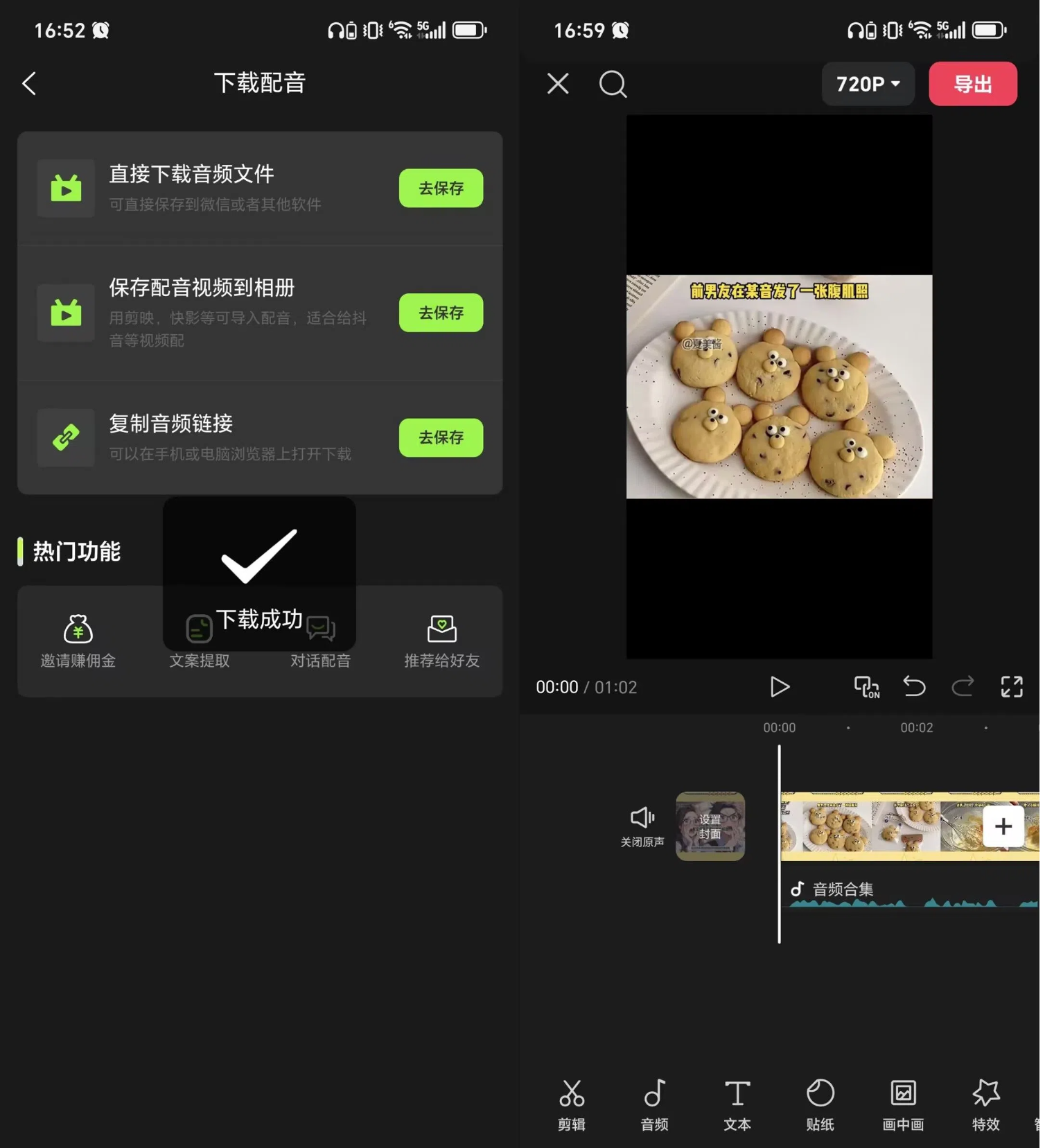 3、导出使用:点击试听,3秒生成,试听满意后直接导出音视频,可直接上传至剪辑软件使用。