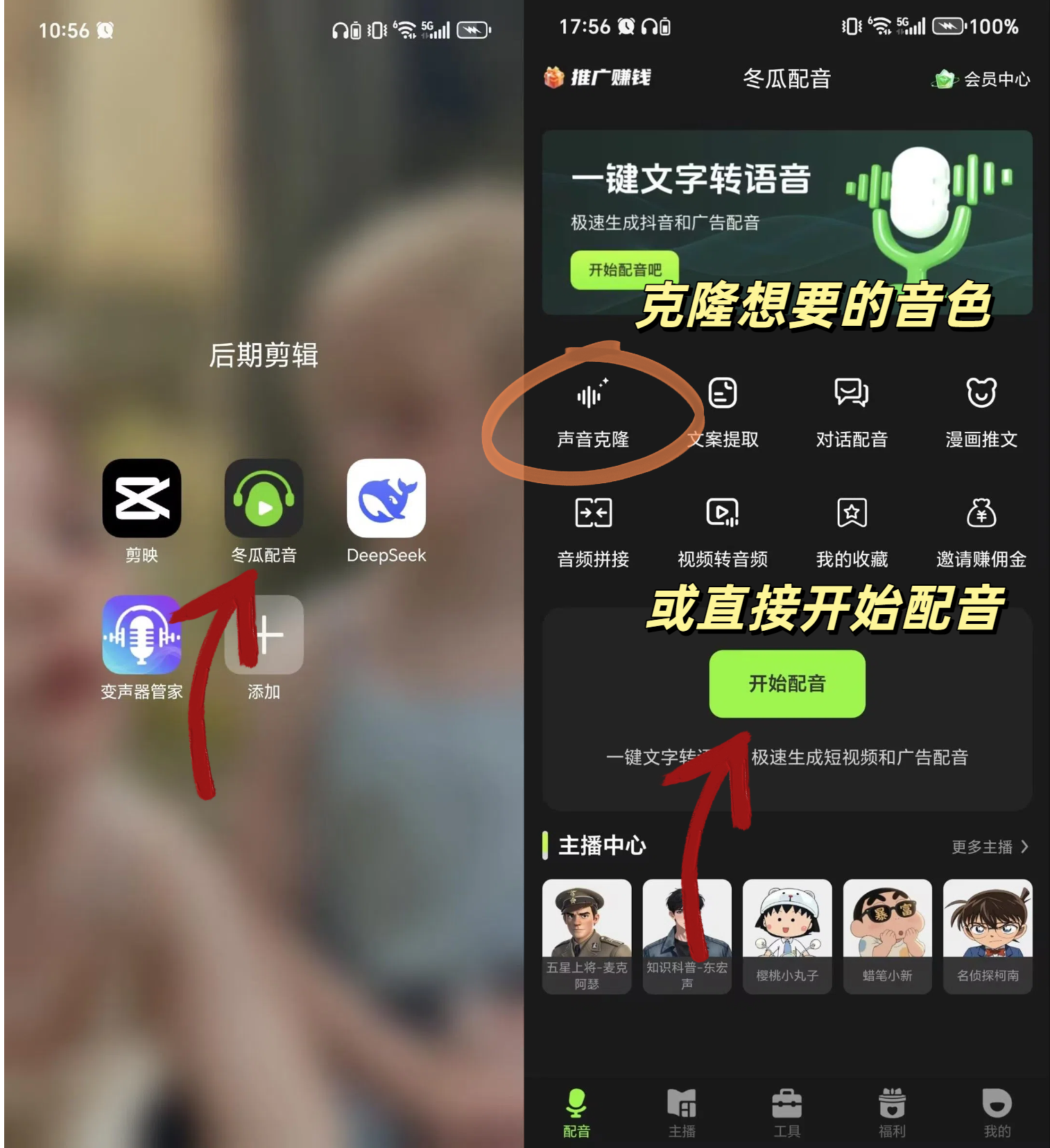 1、粘贴文案:打开冬瓜配音APP/网页,点击“开始配音”,或者克隆自己想要的声音,支持 AI 自动润色,优化口语化表达;