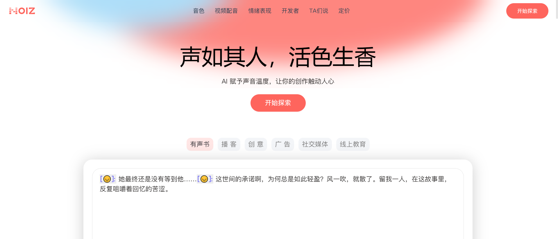 适用场景:情感向短视频、有声书演播、动画台词配音、方言内容创作,适合追求细节质感的创作者。