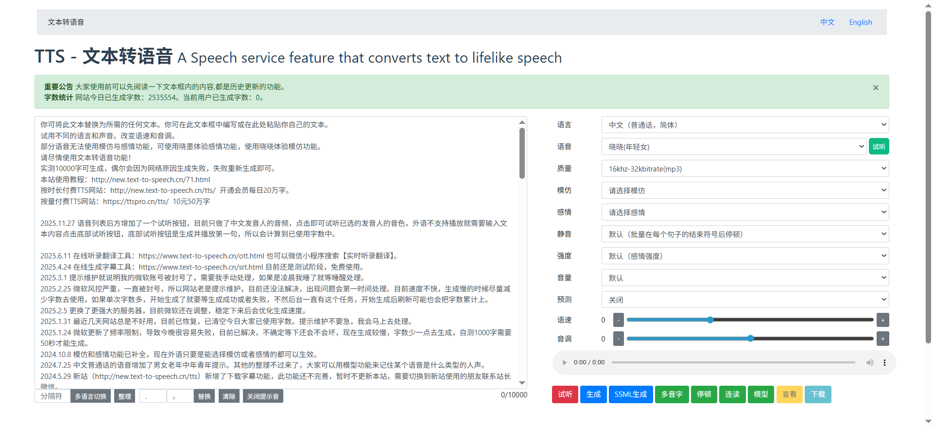 免费额度够用:每日赠送 5000 字符(约 3 分钟语音),500 字文本仅消耗 27 额度;