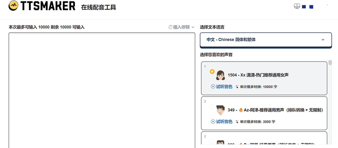 缺点:免费版可用音色极少,仅含少数特色音色(如东北老铁);不支持声音克隆功能;长文本对话配音需分段处理,无批量操作功能。