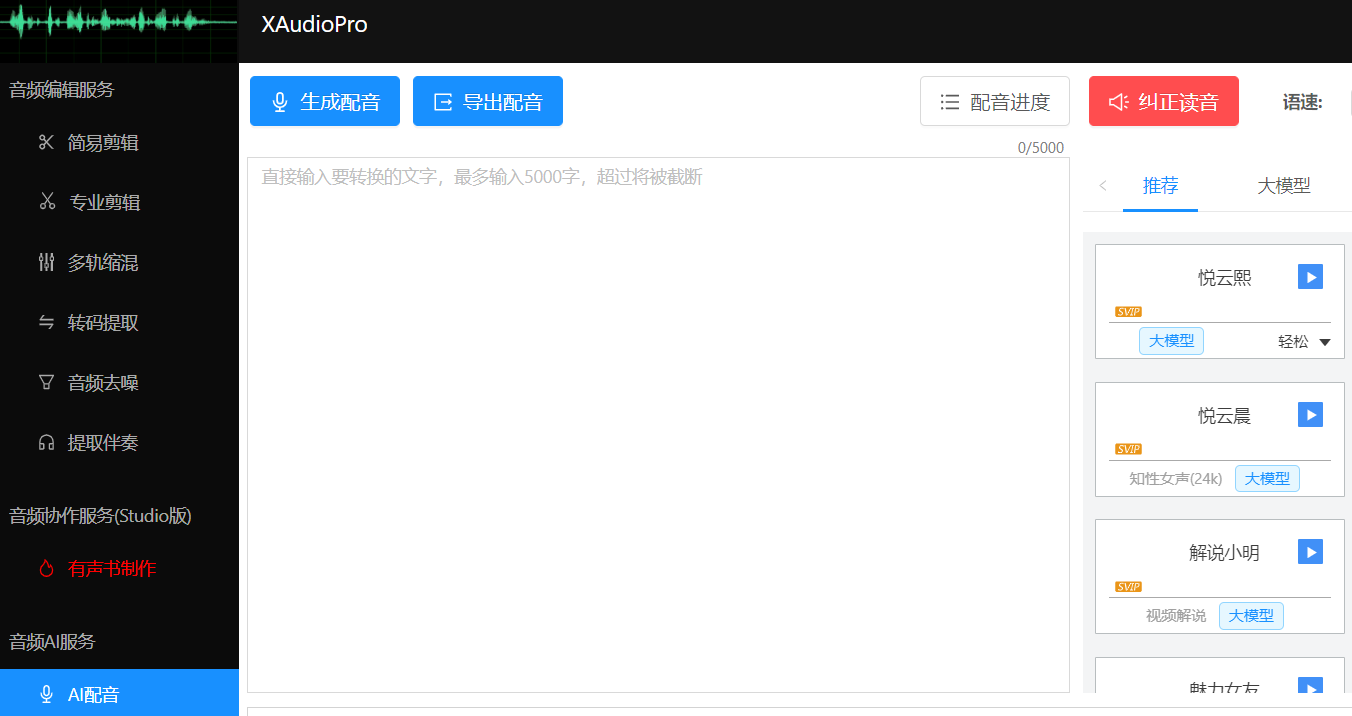 亮点速览:网页端直接使用,手机注册即可解锁免费配音功能;支持多角色文本标注,快速区分对话角色;配音生成速度快,1000字以内文本秒级生成;支持音频后期简单编辑,如裁剪、音量调节。