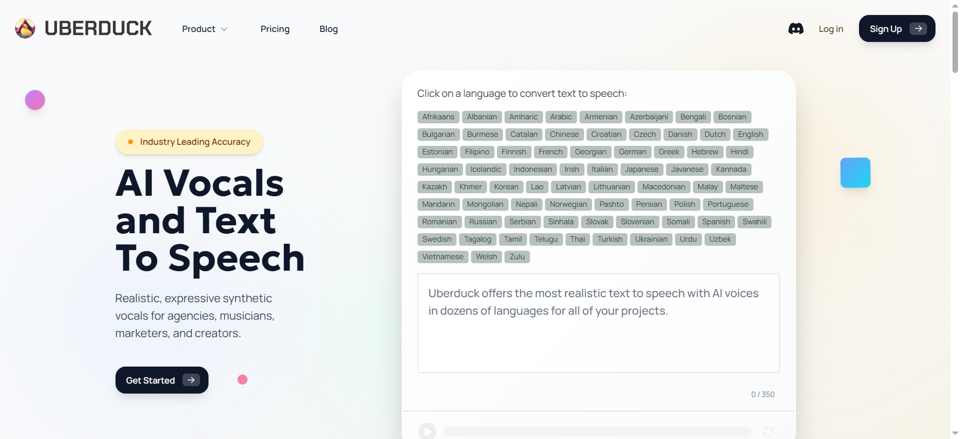 软件概括:Uberduck是一款功能全面的文本转语音与声音克隆平台,凭借丰富的创意声线资源和强大的技术架构,获得Quizlet、Cadbury等知名企业信赖。其支持70+语言选项,涵盖阿拉伯语、中文、法语等多语种,兼顾专业创作与趣味创作需求,2025年末更新后用户友好度大幅提升。