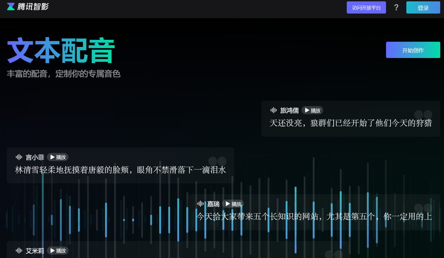 核心优势:腾讯旗下一站式音视频创作平台,配音 + 剪辑无缝衔接,150 + 音色覆盖普通话、方言、外语,含游戏解说专属磁性、激昂声线;自动生成 SRT 字幕,实现毫秒级音画同步,可直接对接剪映、PR 等剪辑软件,团队协作功能友好,支持多人在线编辑配音文案;免费版无强制水印,付费版解锁高清音频导出和数字人解说功能。