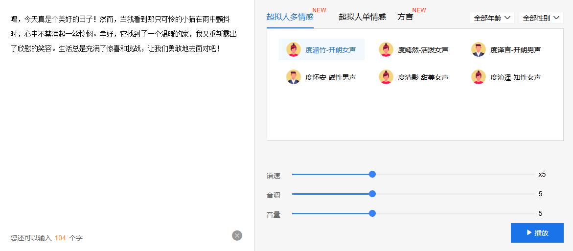 技术实力强:依托百度 AI 技术,语音合成算法成熟,中文发音标准、断句逻辑清晰,长文本朗读流畅无卡顿。