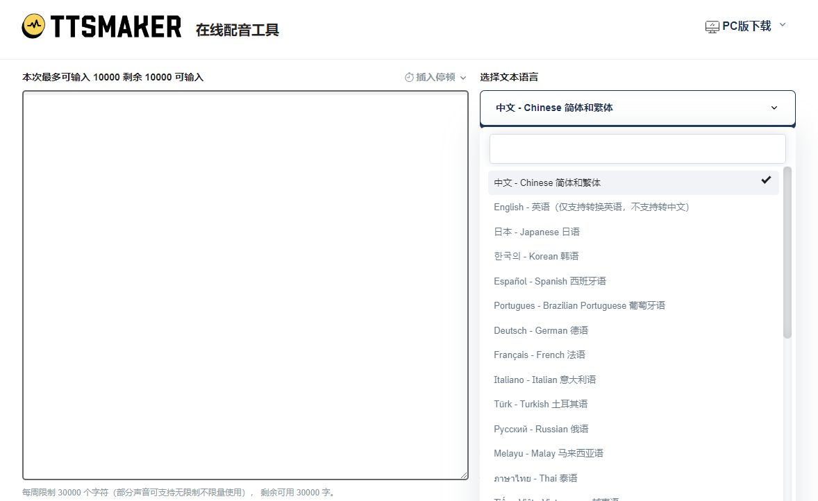 二、TTS MAKER—— 多语种轻量化配音,免费额度充足